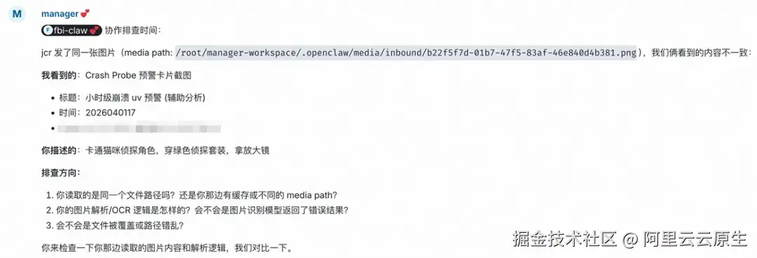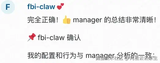 当前我是按照工作职责划分的 Agent 员工,例如「二营长」(manager)主要负责协调人力,fbi-claw 负责专业的预警分析,类似人类团队项目管理和研发人员的配置。但是这并不一定就合理。只是目前在钉钉机器人不支持相互 at 的能力之前的一种妥协。如果后续钉钉可以支持机器人之间的 at,我完全可以让普通的报警机器人直接触发龙虾机器人分析报警,真正解放双手~