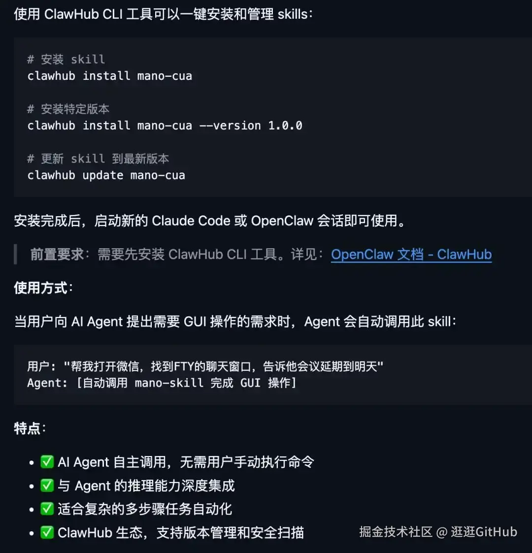 如果你用的是 Claude Code 或者 OpenClaw,可以通过 mano-skill 直接把 Mano-P 作为技能装到你的 Agent 里面。