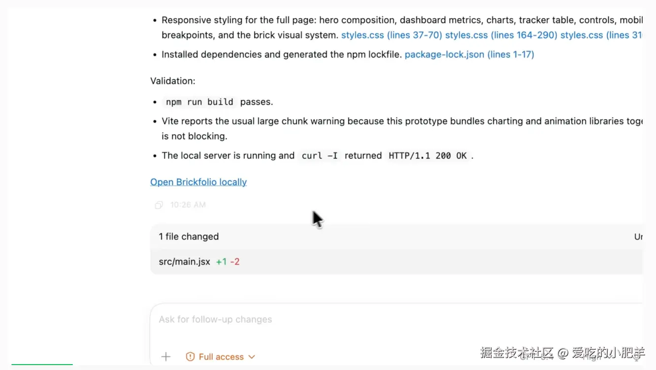 但这个功能的用法很有意思,Codex 帮你生成了一个前端页面,你在内置浏览器里打开,觉得哪里不对,直接在页面上点一下留条评论,Codex 读完评论接着改。