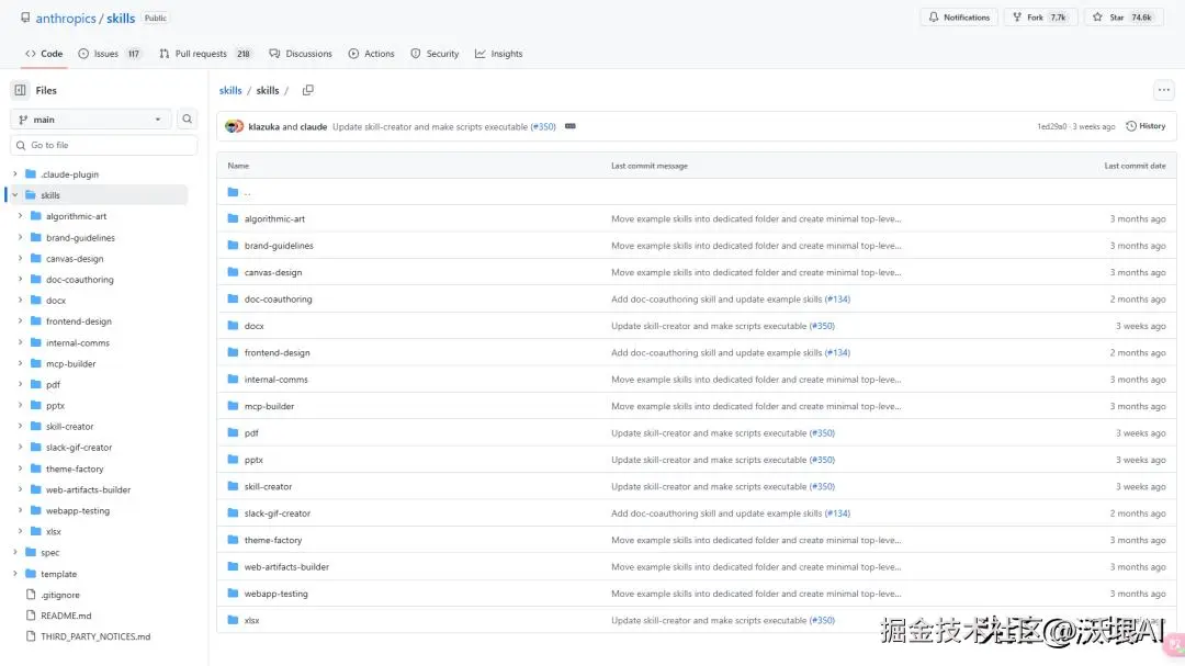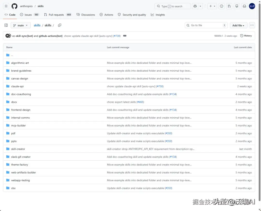 通常,skill会放在GitHub这个全球最大的代码开源社区上,比如Anthropic的一些开源skill,它就统一放在这里。