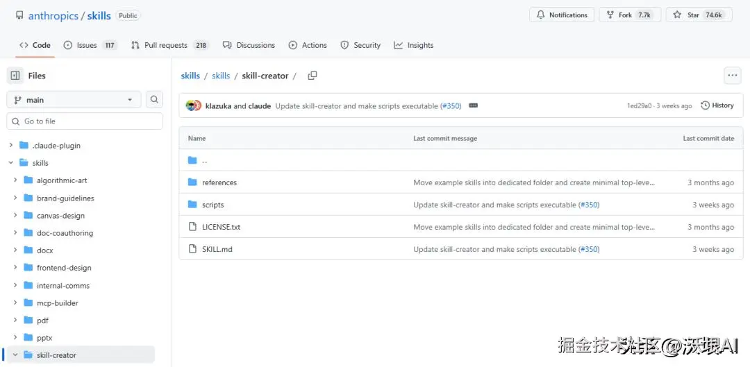 这个「Skill-creator」,建议每个人都安装一下,它是一个专门创建skill的Skill,在Github上已经有超过80k star了。