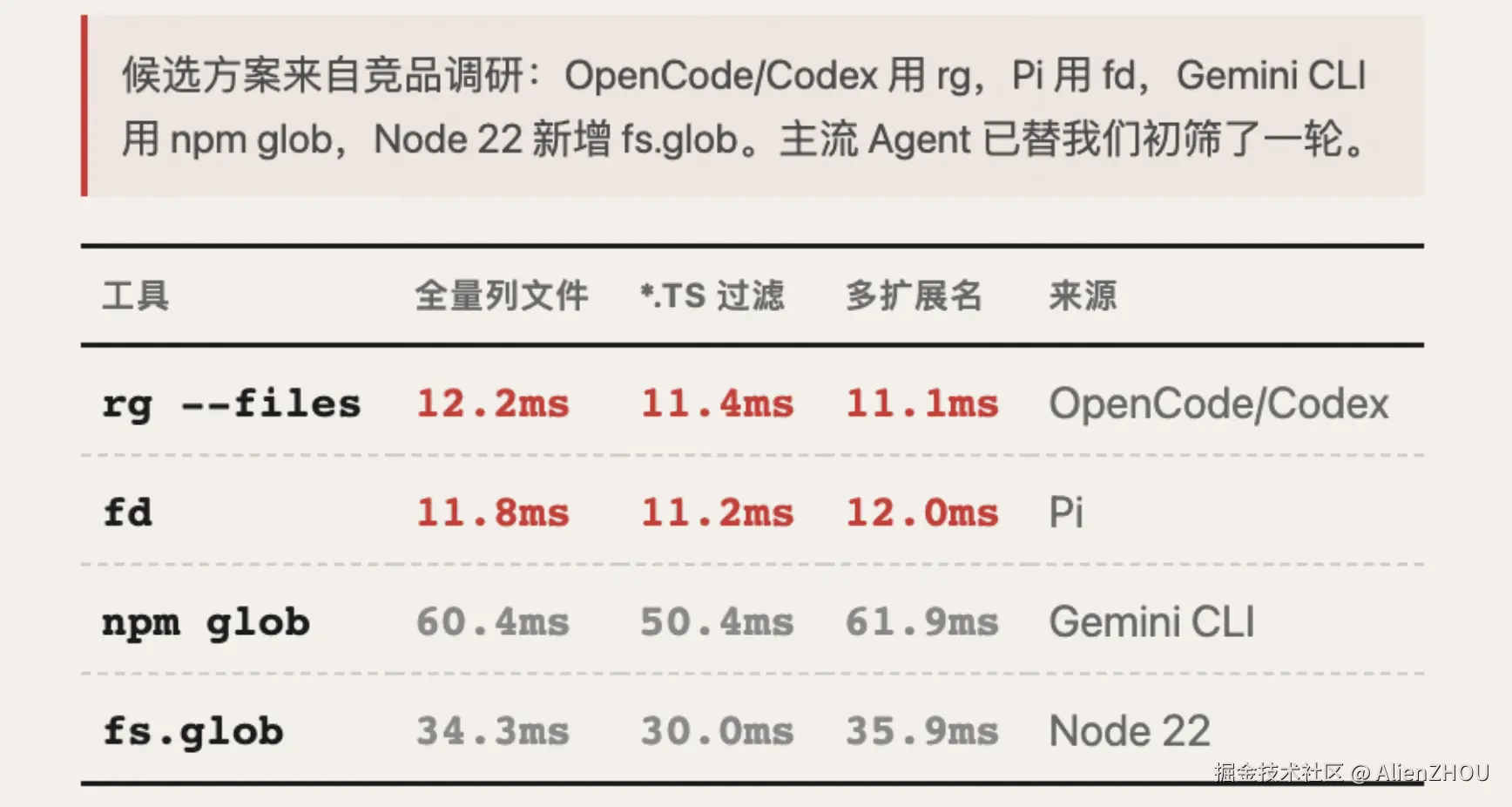 同样是文件搜索,主流 Agent 工具的选择各不相同: