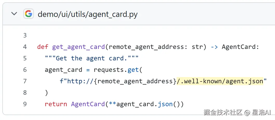 # Agent Card 声明(通过 /.well-known/agent.json 暴露)