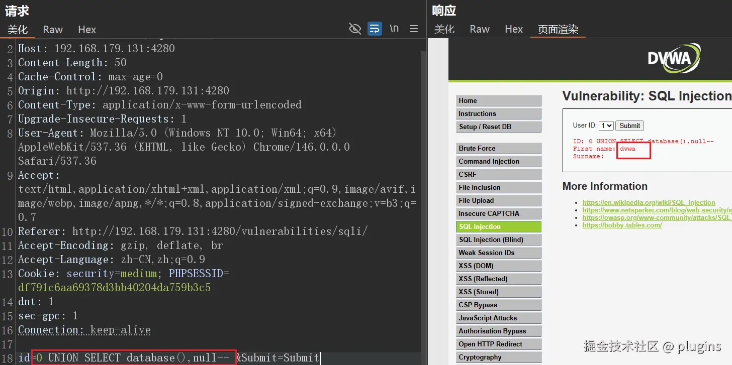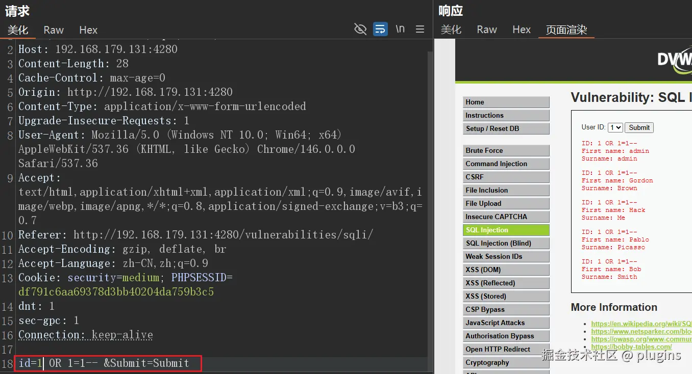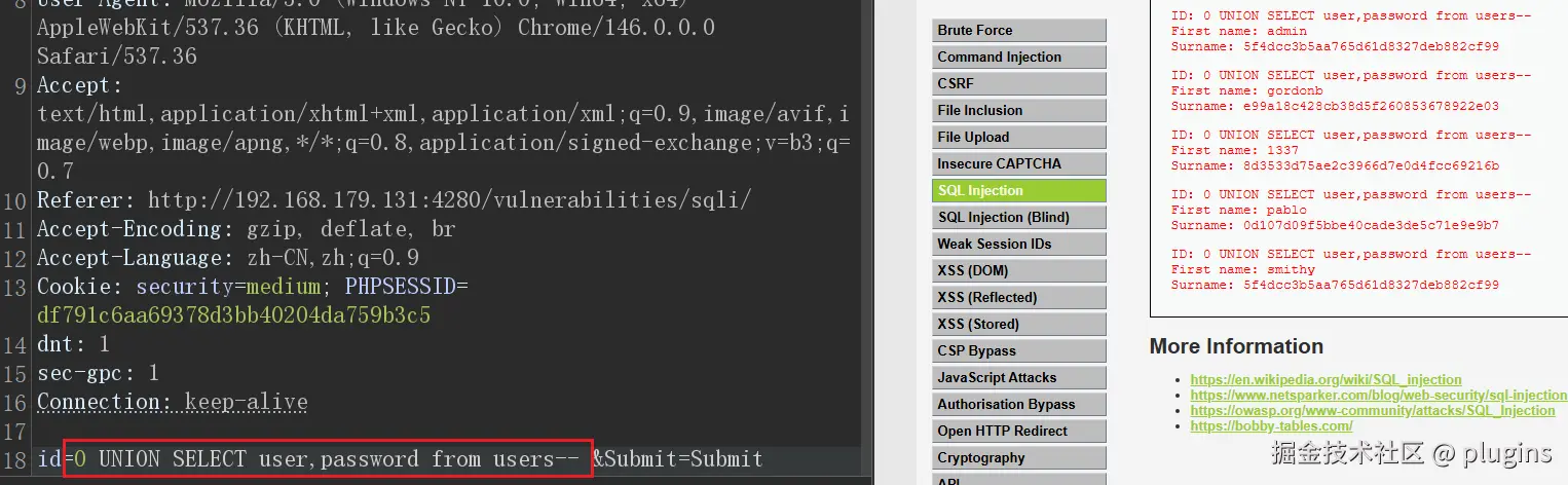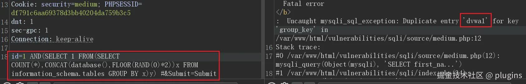 在处理同一行或后续行的分组插入/校验时,第二次计算 x值:CONCAT('dvwa',1) = 'dvwa1'