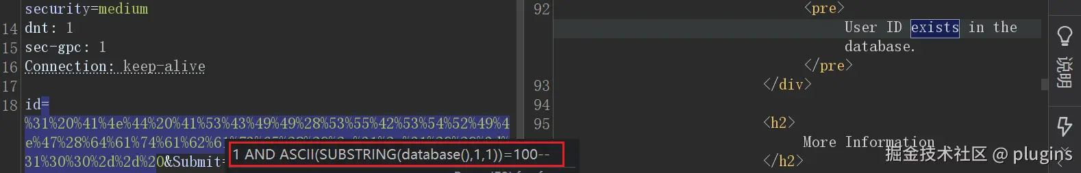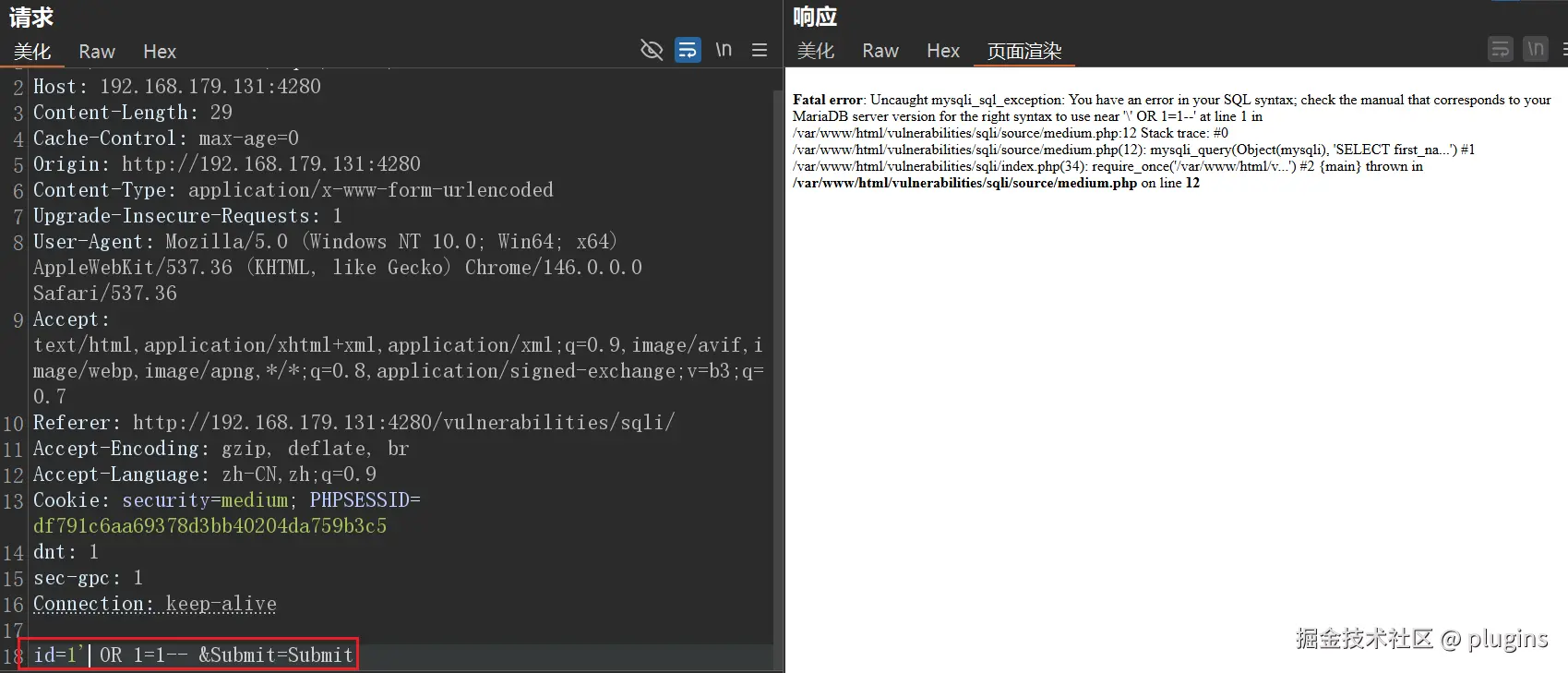 中级难度采用了"mysql_real_escape_string()"函数进行SQL注入防护。但由于SQL查询参数未用引号包裹,该防护无法完全阻止查询被篡改。