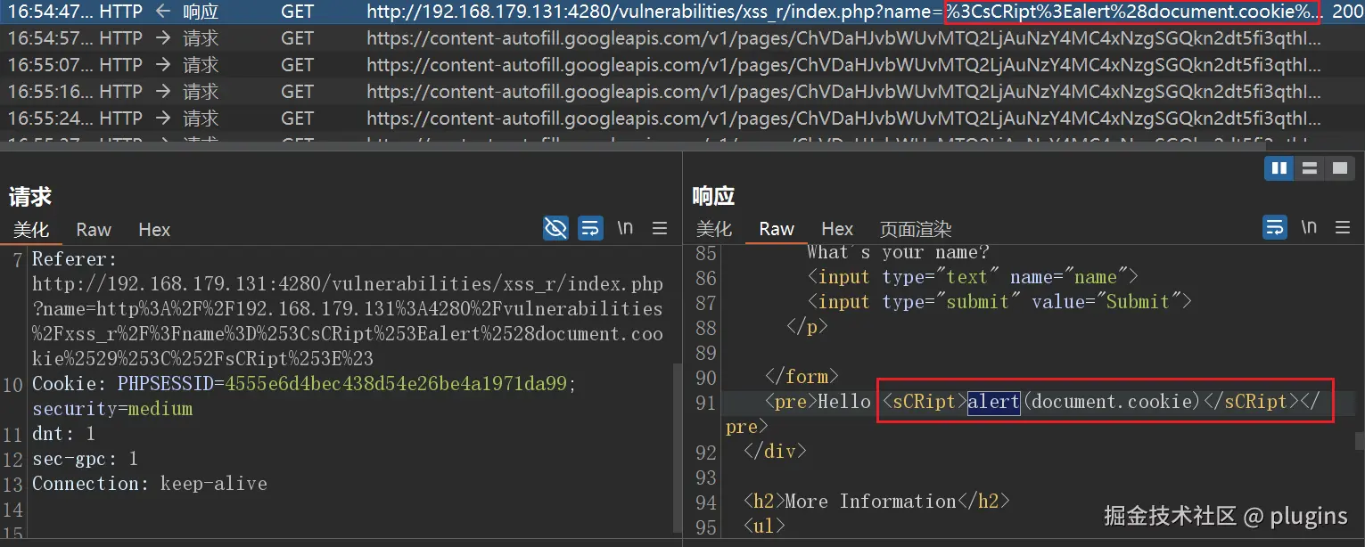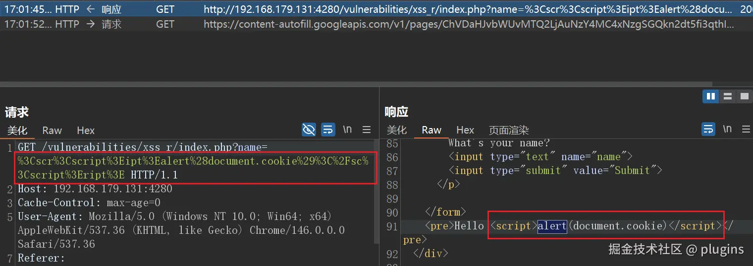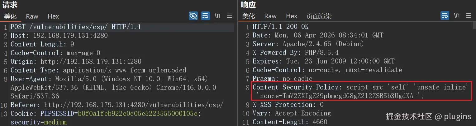 可以看到nonce值确实是固定的,同时会将用户的输入直接贴在页面上,携带nonce值的XSS-payload会被执行