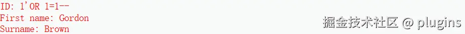 说明需要引号闭合,且一共有两个回显位置分别是 first name和 surname,即原语句查询两列数据