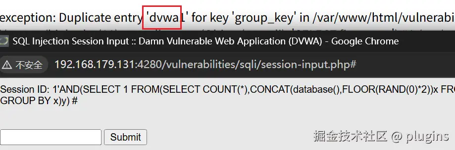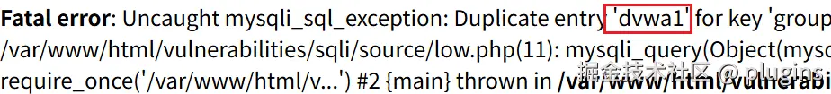 原本要放进'dvwa0'分组的数据,现在键值变成了'dvwa1',导致系统试图将一行数据插入到一个与最初判断不同的分组中,从而在内部临时表引发了重复键或一致性冲突
