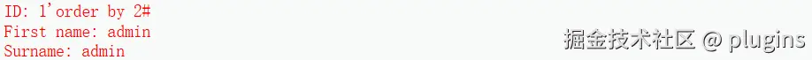 1'order by 2#成功回显了,说明至少有两列 1'order by 3#报错,说明查询列数不超过3列,即只有两列