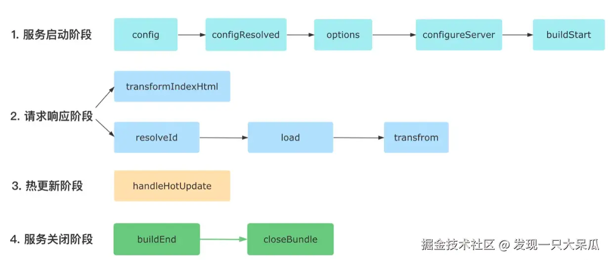 resolveId、load和transform钩子 - 服务器关闭阶段 :Vite 会依次执行