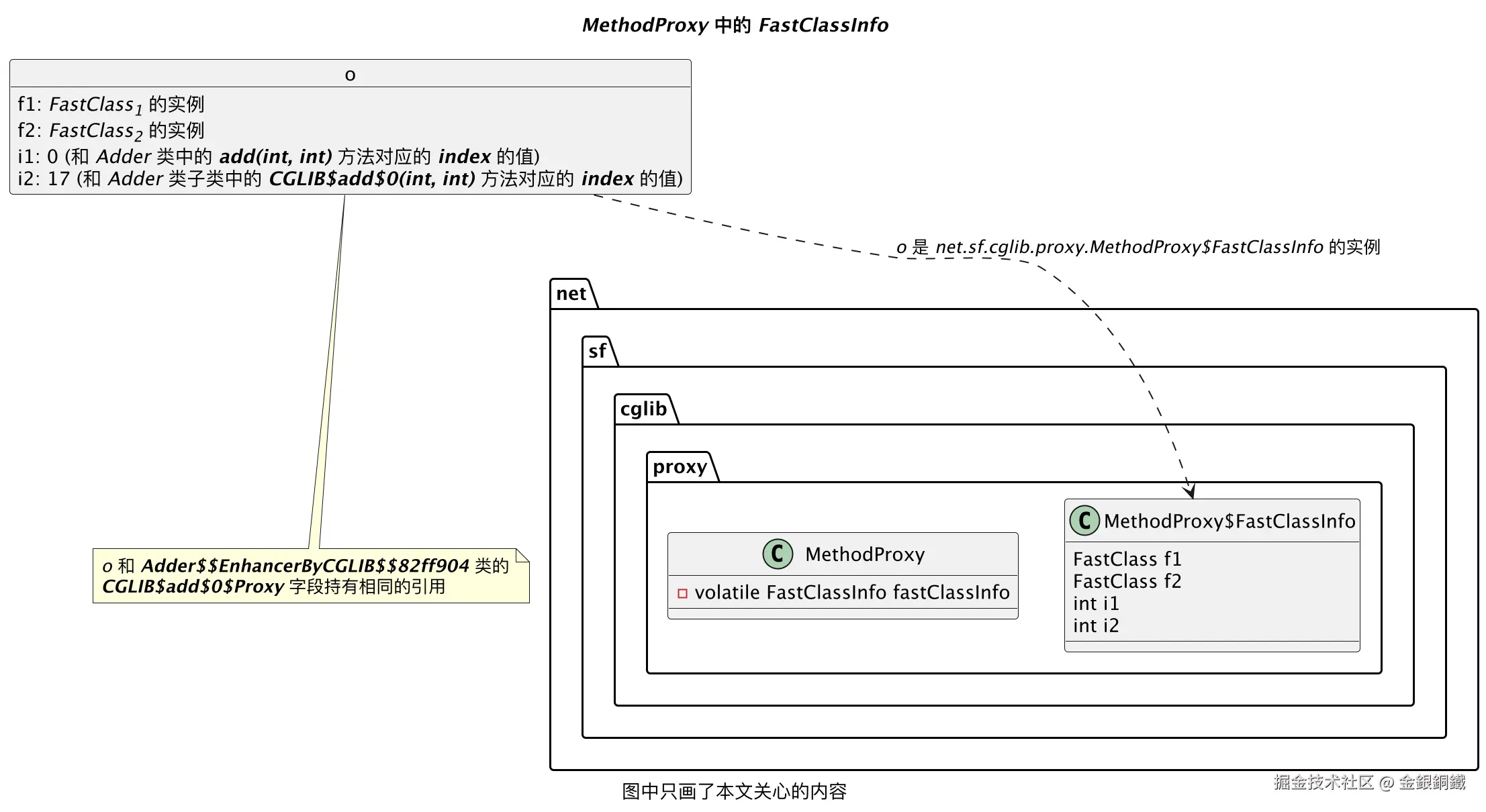o ..> net.sf.cglib.proxy.MethodProxy$FastClassInfo: <i>o</i> 是 <i>net.sf.cglib.proxy.MethodProxy$FastClassInfo</i> 的实例