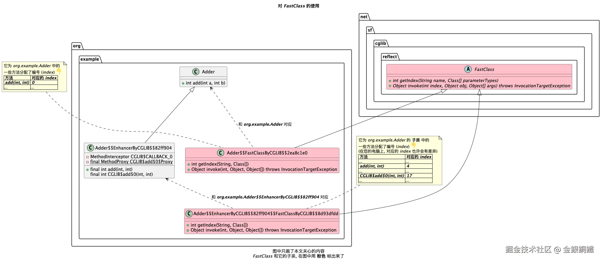 org.example.Adder <.. org.example.Adder$$FastClassByCGLIB$$2ea8c1e0 : 和 <b><i>org.example.Adder</i></b> 对应