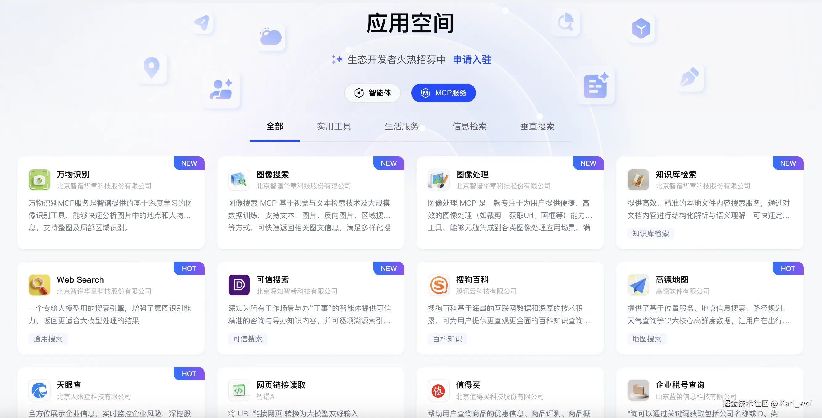 智谱的生态在国内还算是相对成熟,生态内有不少智能体和MCP