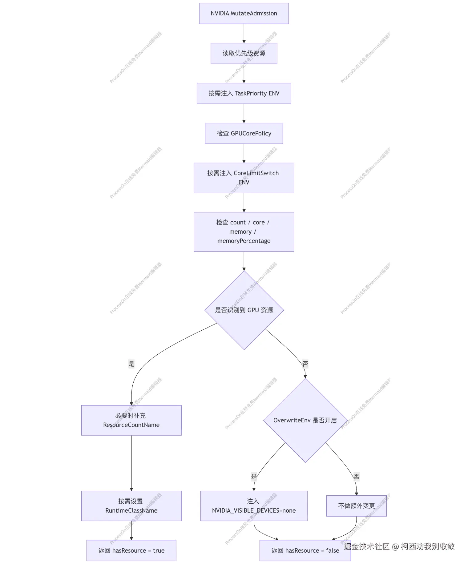 以 NVIDIA 设备实现为例,MutateAdmission 不只是检查资源是否存在,还可能直接修改 Pod / Container 内容,