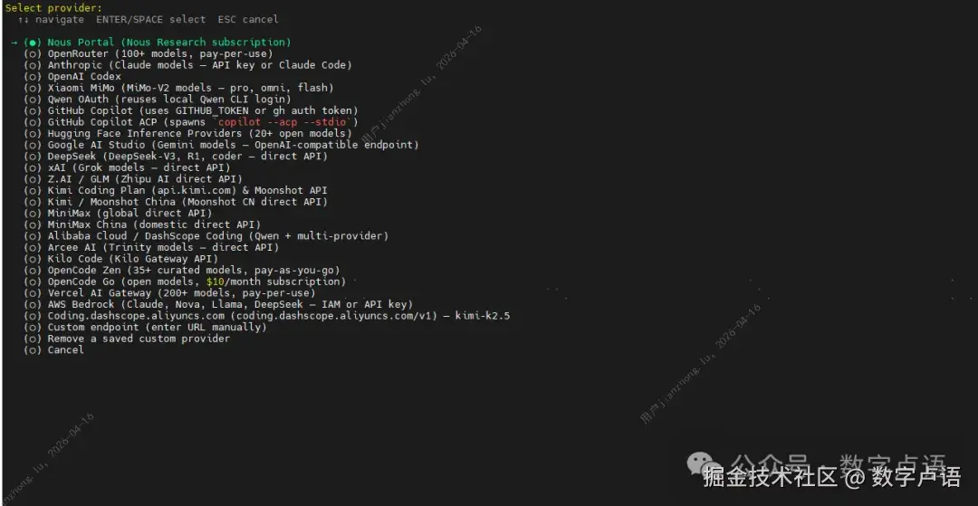 - 必须用 Hermes 内置 Alibaba Cloud provider