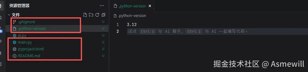 uv init -p 3.12 //执行完命令后,会多出如下文件