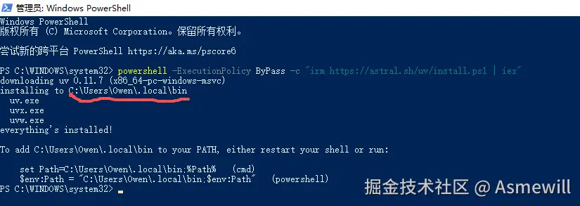 下载的uv默认地址:C:\Users\Owen.local\bin\uv.exe