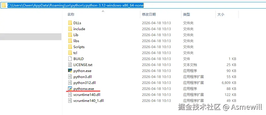 python下载的位置:C:\Users\Owen\AppData\Roaming\uv\python\cpython-3.12-windows-x86_64-none\python.ext