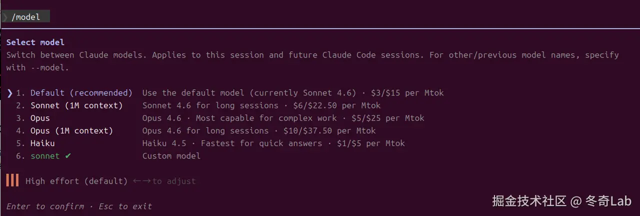 # 方式 1:在 /model 菜单中用 ← → 箭头键调节滑块