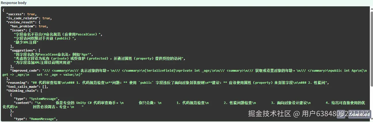 本文将带你从零开始,使用 FastAPI + LangChain + LangGraph + DeepSeek 构建一个专注于 Unity C# 的代码审查 Agent。从最基础的 Chain 链路,到具备工具调用的 ReAct Agent,再到结构化输出、意图分类、思考链可视化和工程化加固,完整呈现一个 AI Agent 从 Demo 到生产级的进化过程。适合对 AI Agent 开发感兴趣的后端/游戏开发同学阅读。