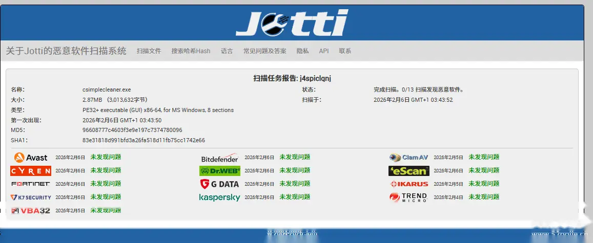csimplecleaner.exe /s /all--- 执行所有清理项csimplecleaner.exe /s /1234--- 执行指定编号的清理项