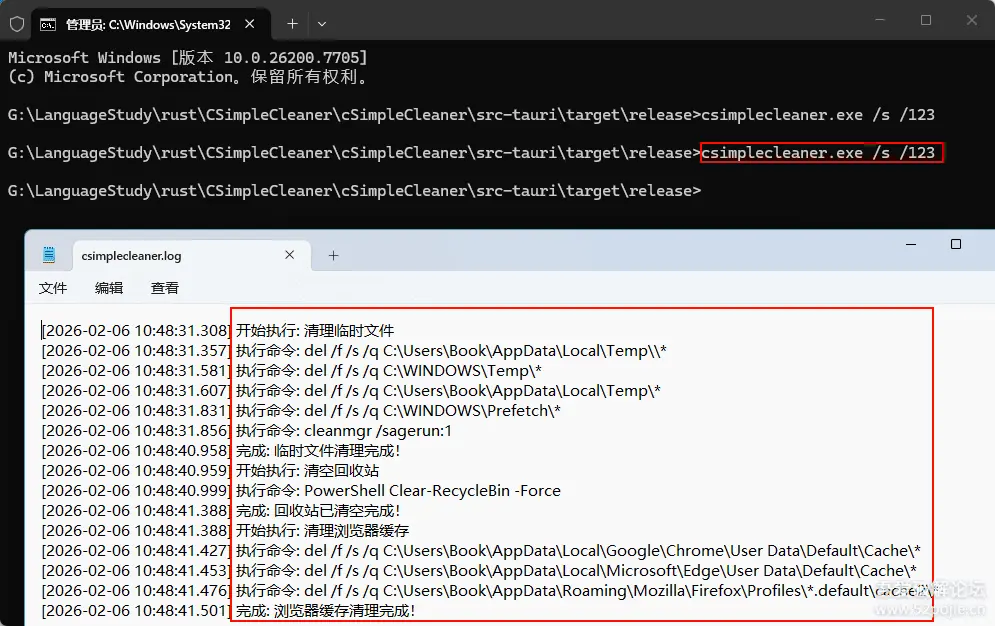 静默模式清理:支持命令行参数,可以写进批处理脚本定时执行