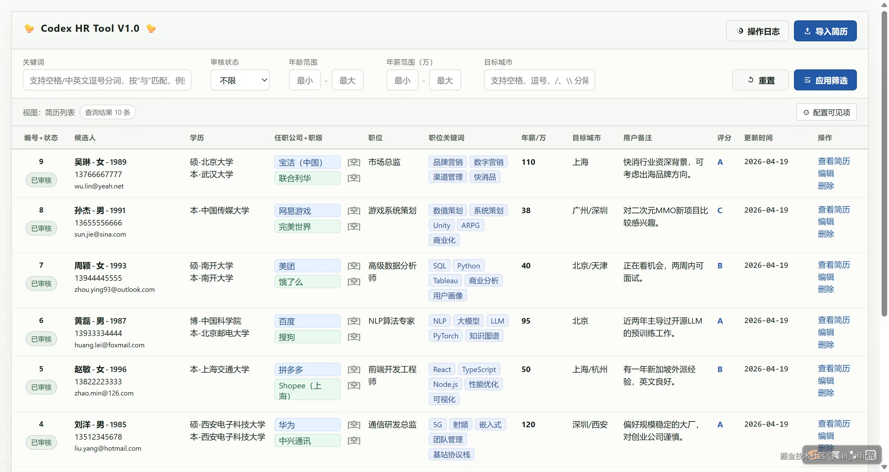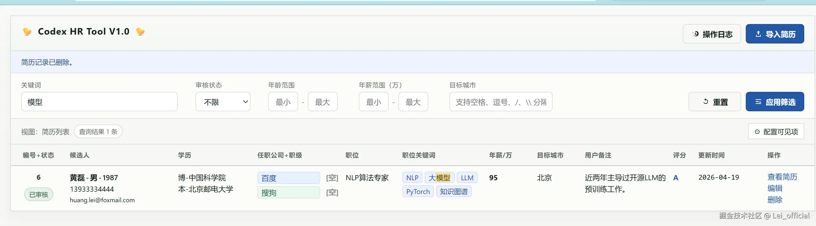 在Ai的辅助下,即使我的python仅具备初级水平,仍然完成了这样一套MVP版本的简历管理工具。