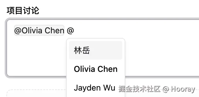 这是一个在大组件库中的一个"提及"功能小组件,功能看起来不复杂,但因为并不是独立组件,涉及到一些组件库内部共享的包依赖,所以要单独复刻其中这一个组件,场景会更复杂。