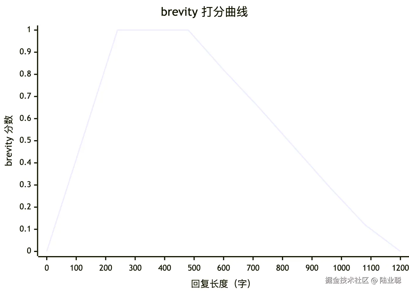 brevity:40~250 字满分,超过线性衰减到 1200 字归零platitude_penalty:命中"换个视角 / 保持积极心态 / 建立规范"这类鸡汤词,每个扣 0.35