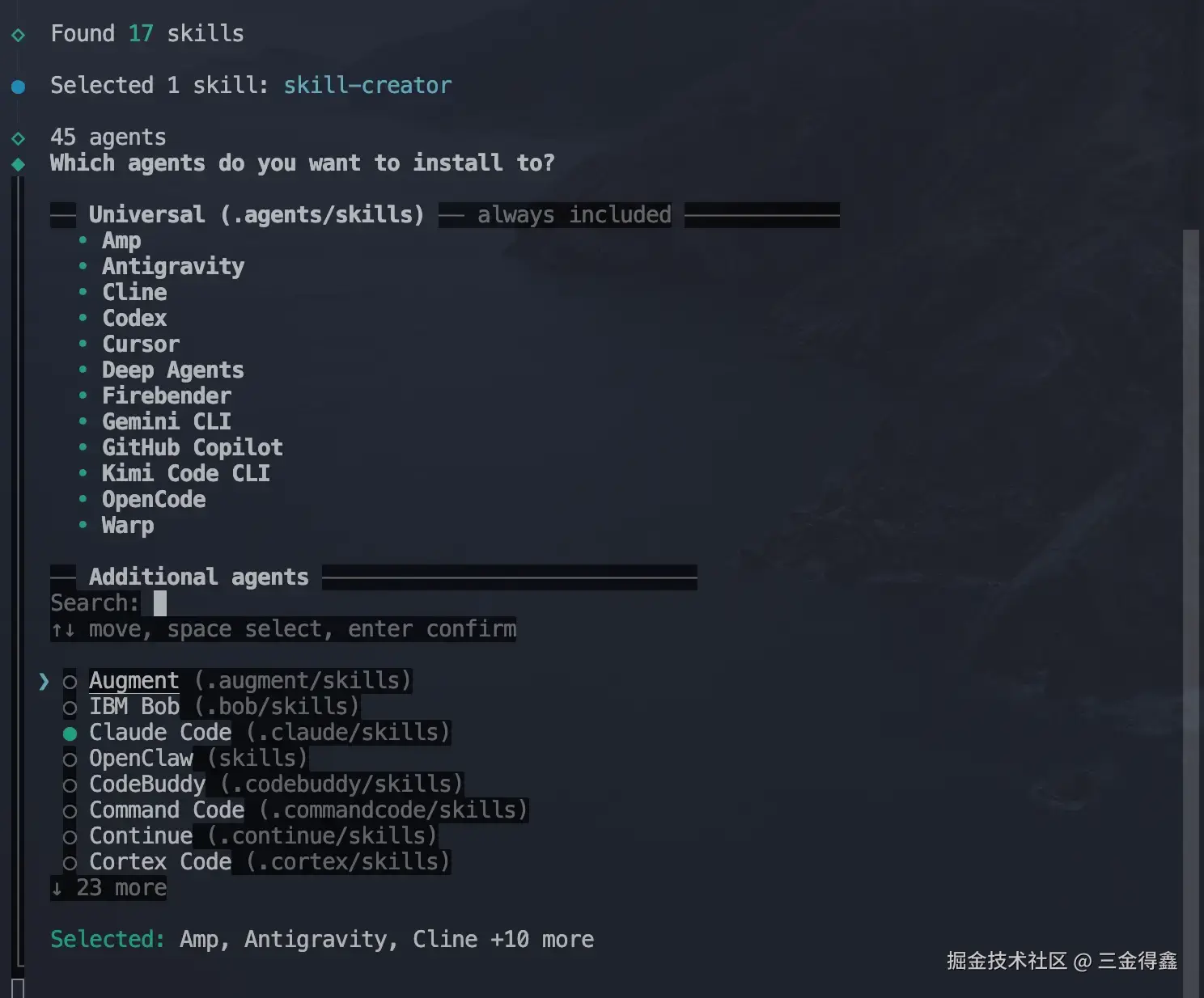 在终端输入以下指令进行 skill-creator 安装: