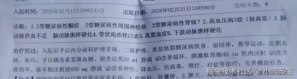老爸吃了两天双胍,又测了几次,感觉血糖没怎么下降。同时嘴巴还有点发炎,好像越来越痛。我们都说去医院看看,反正就是不听,还要大喊大叫。终于是嘴巴张不开吃不了饭了,才终于去了医院,腊月二十八,除夕前一天,去了区里面的中心医院检查,然后,就强制住院治疗了。