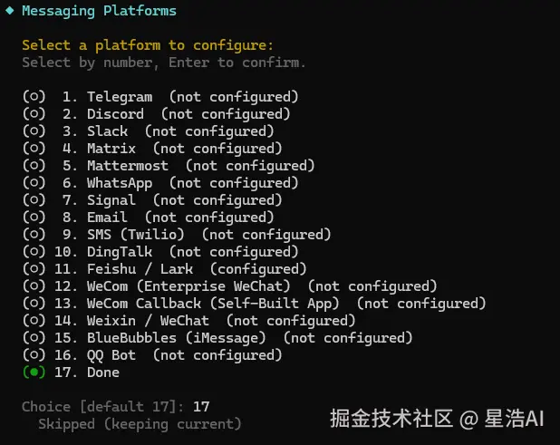 跳过消息平台配置,后面再配置