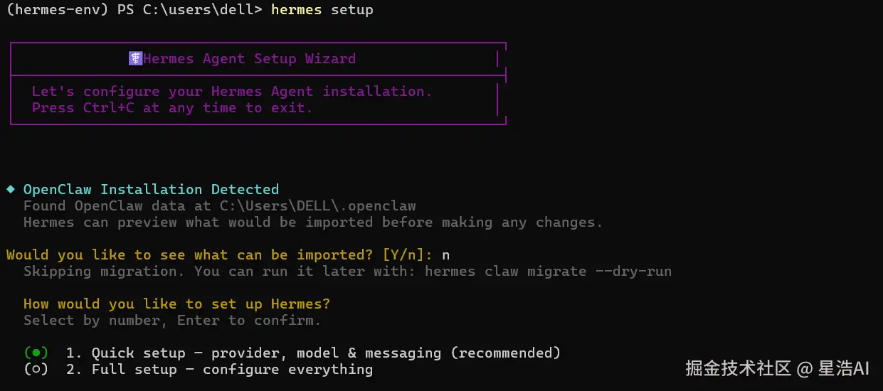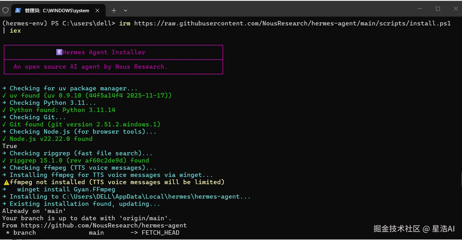 官方文档中说明:Hermes 不支持原生 Windows 系统,需要预先安装 WSL2。今天我们介绍的另外一种安装方式。