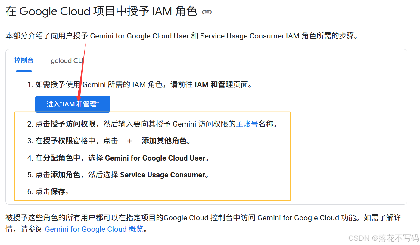 进入页面: https://cloud.google.com/gemini/docs/discover/set-up-gemini?hl=zh-cn#grant-iam,按照步骤去增加角色即可。