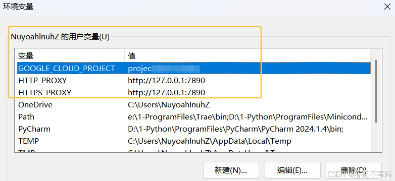 变量名 填入:GOOGLE_CLOUD_PROJECT