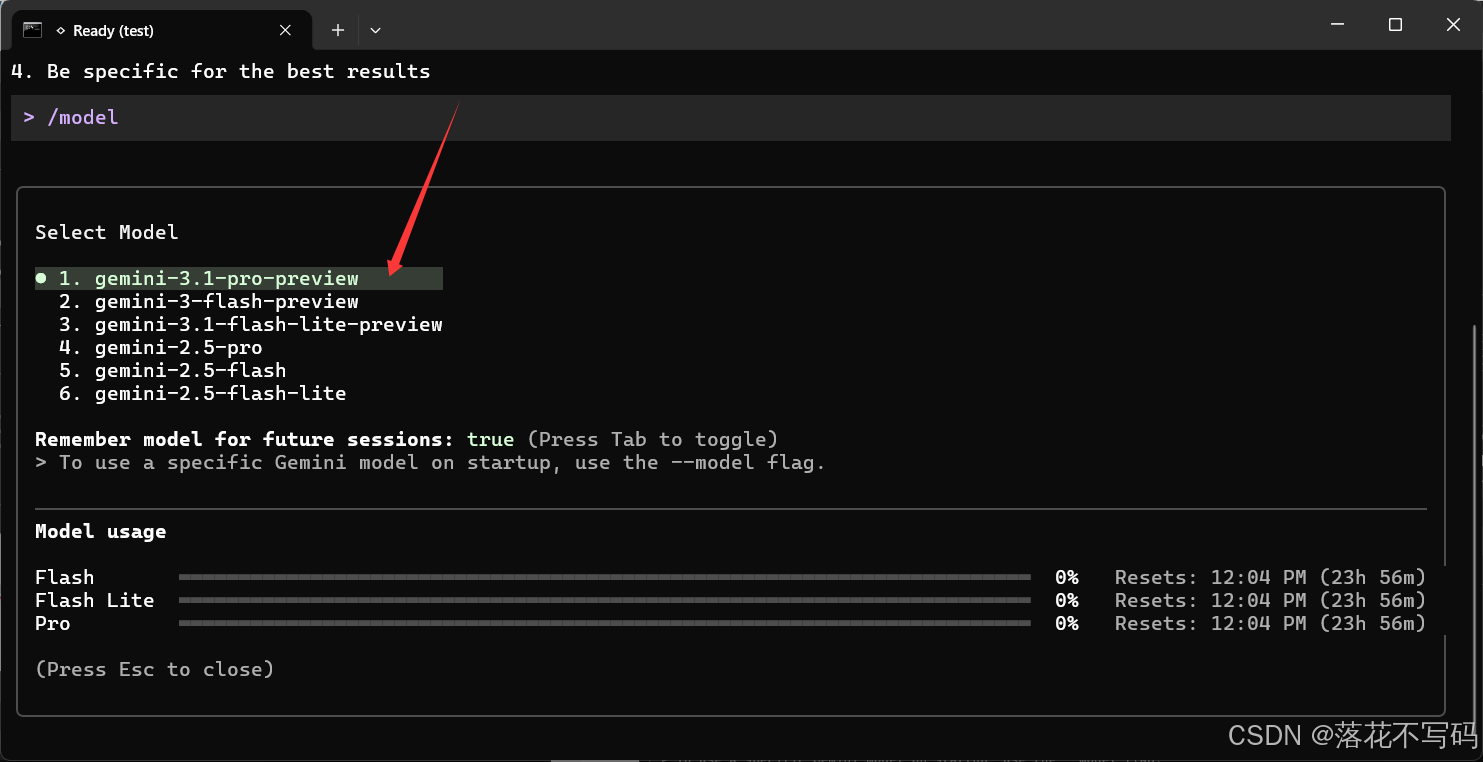 输入 /model 回车看看,