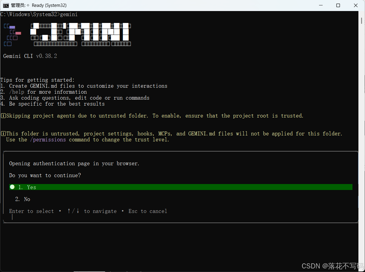 启动 Gemini CLI