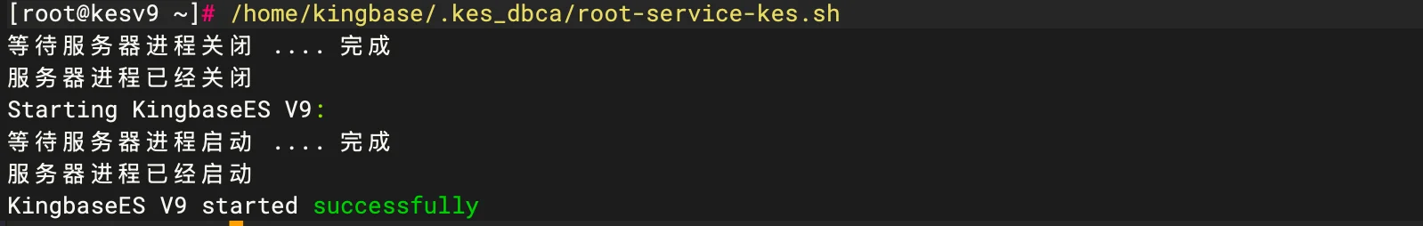 [kingbase@kesv9:/home/kingbase]$ sys_ctl start -D /data/