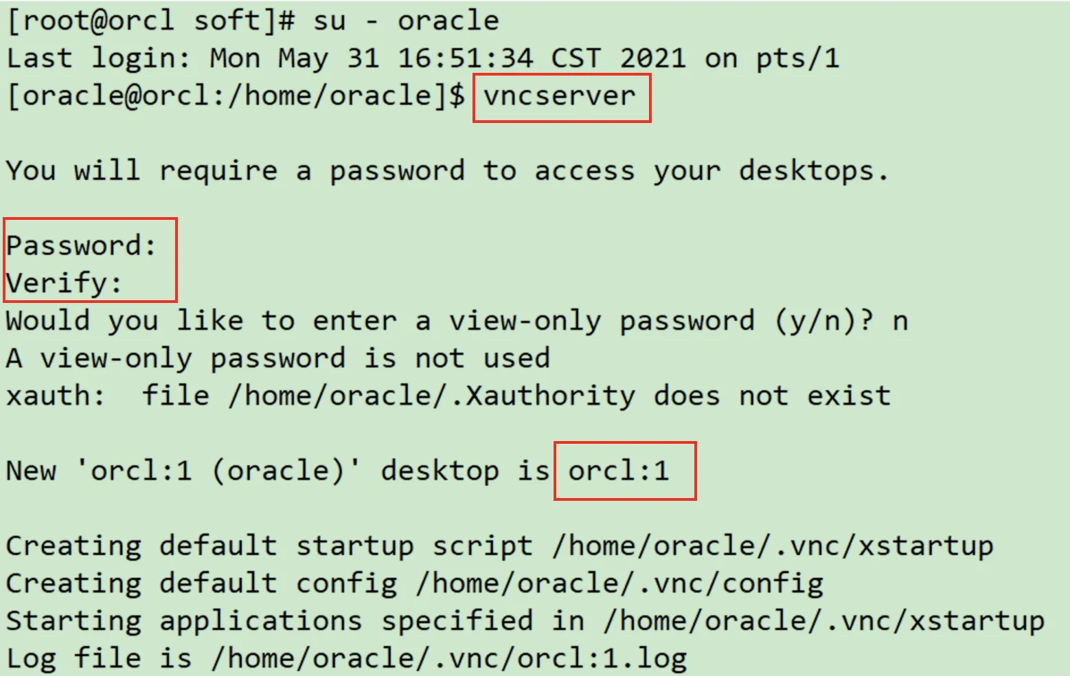 # 输入两次密码,该密码用于连接vnc远程桌面,可自定义