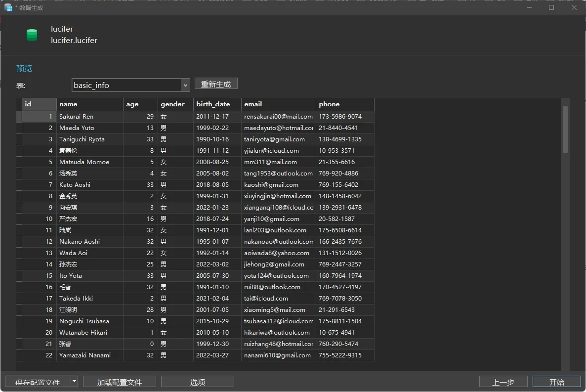 所有表都创建成功后,进行数据生成测试:
