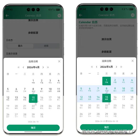 - ✅ 支持单日期选择和日期范围选择两种模式