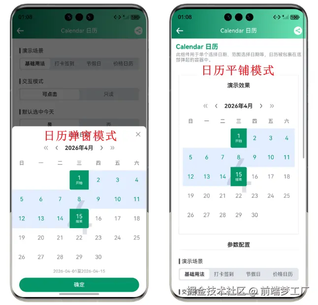 在 uni-app 开发中,日期选择是一个高频需求场景。无论是酒店预订的入住离店时间选择、电商平台的商品预约、还是日常应用的打卡签到,一个功能完善、体验优秀的日历组件都是必不可少的。