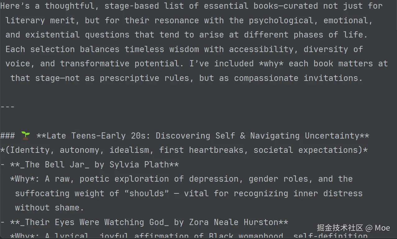 目前,Spring AI 提供了 AbstractConversionServiceOutputConverter、AbstractMessageOutputConverter、BeanOutputConverter、MapOutputConverter 和 ListOutputConverter 实现