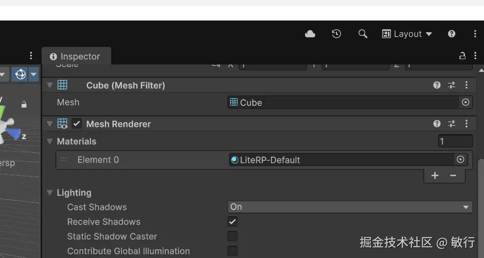 此时的渲染对象使用的是默认材质,也就是 Built-in 默认管线下的材质与 Shader。