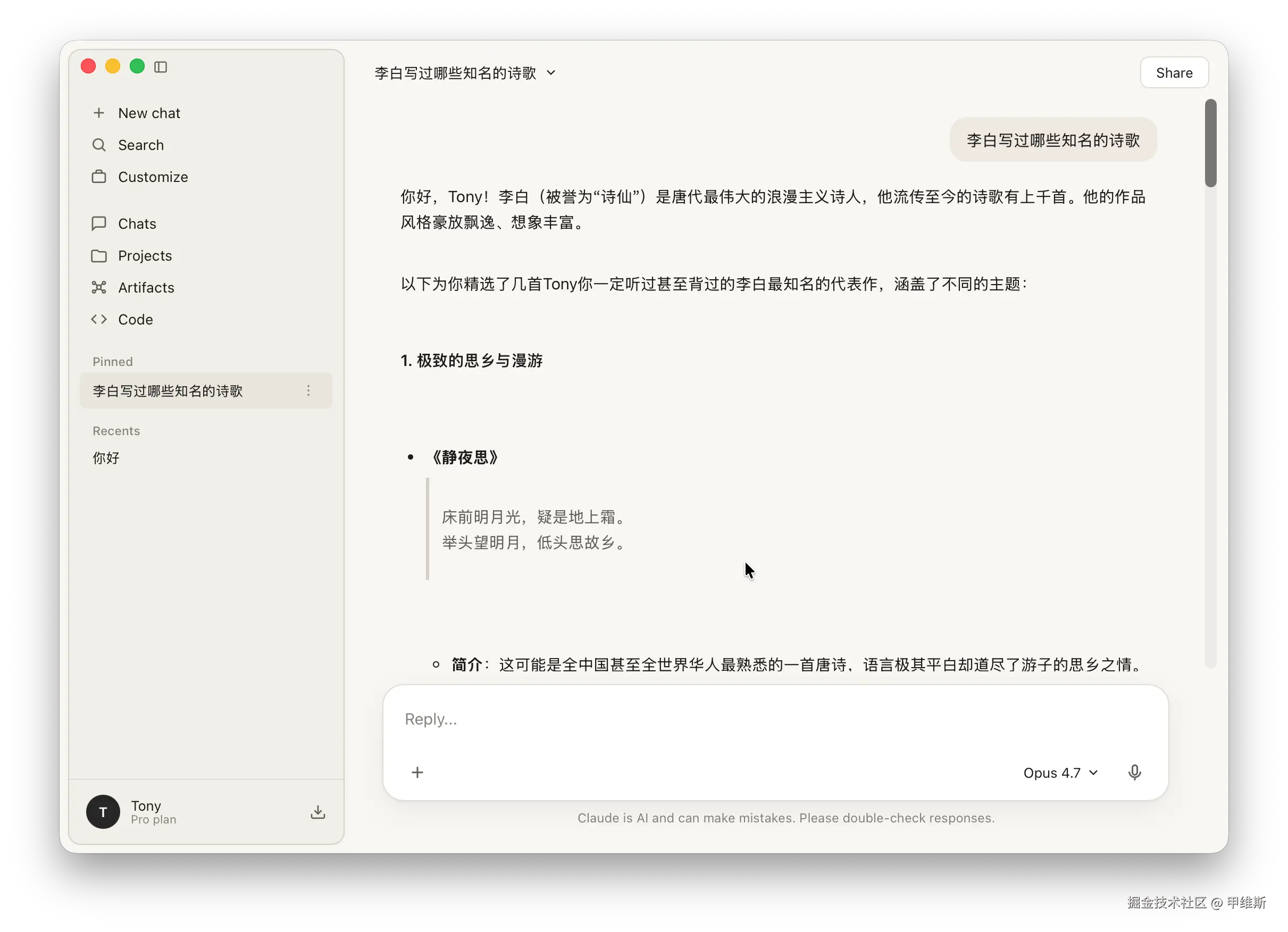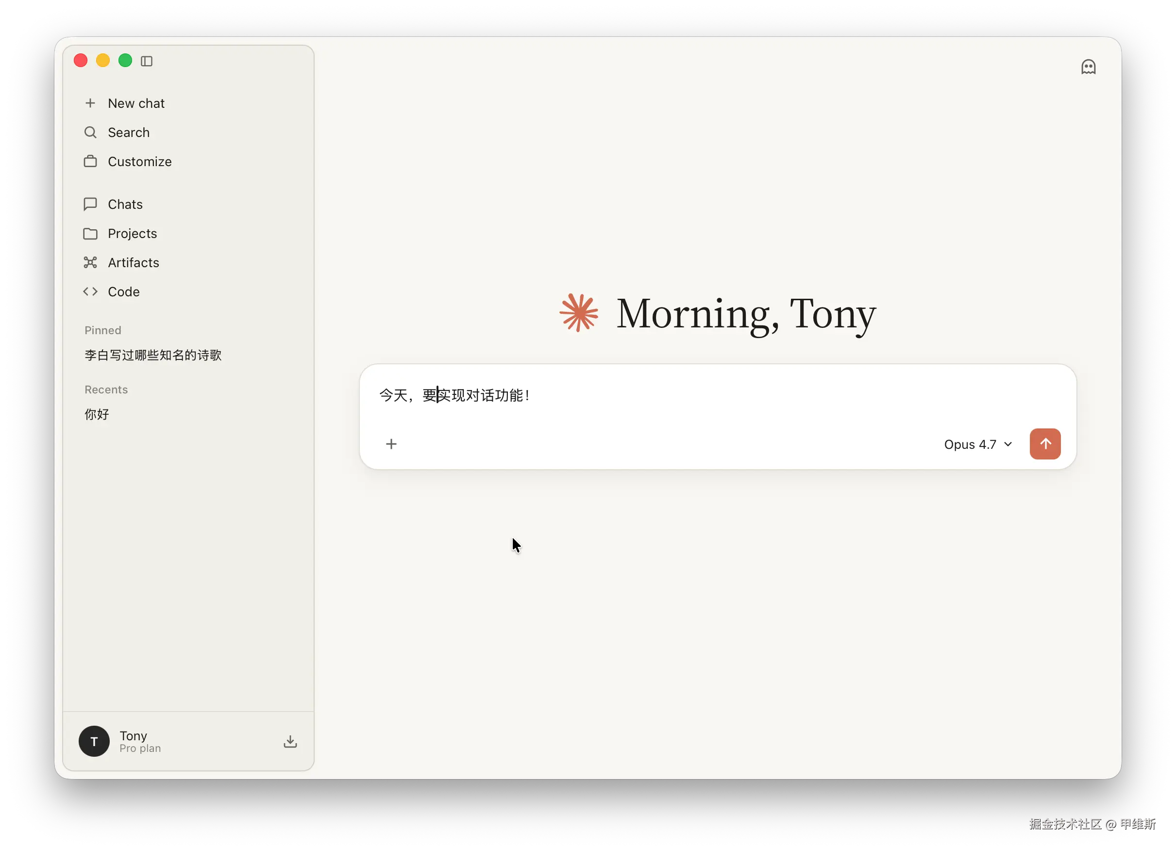 前两天,我让最新的 Opus 4.7 克隆了他们家官方网页和官方桌面版软件的界面。