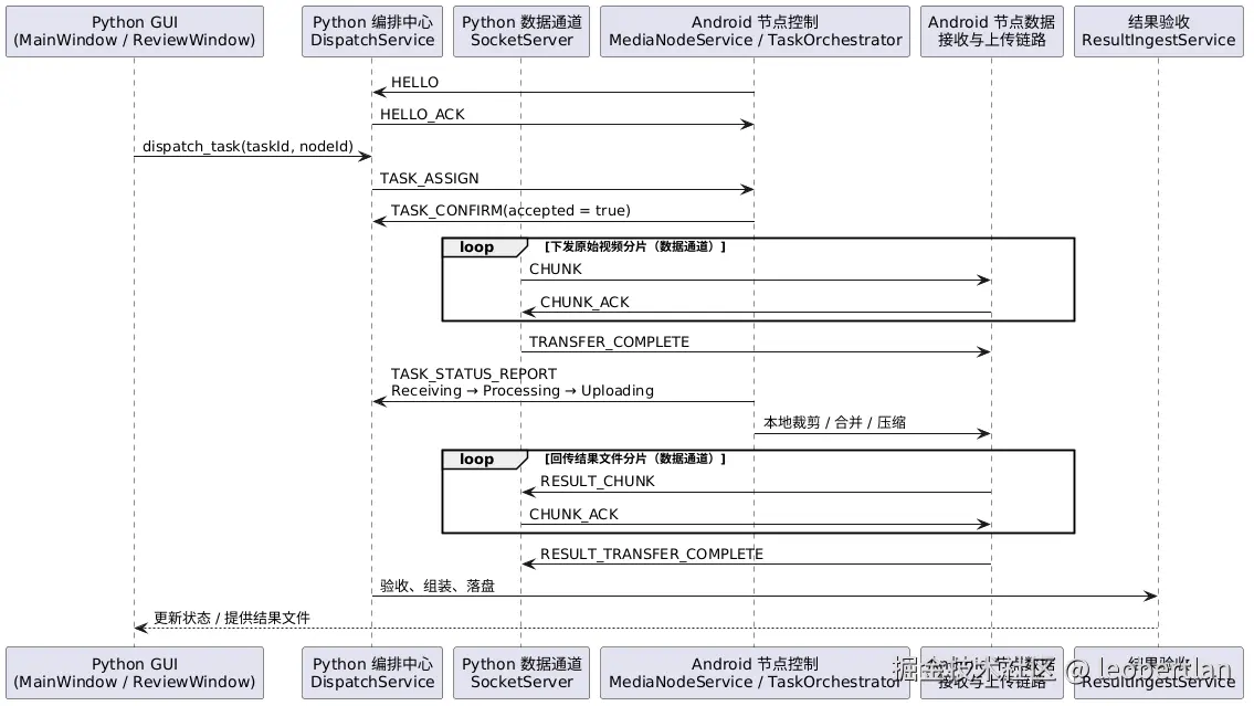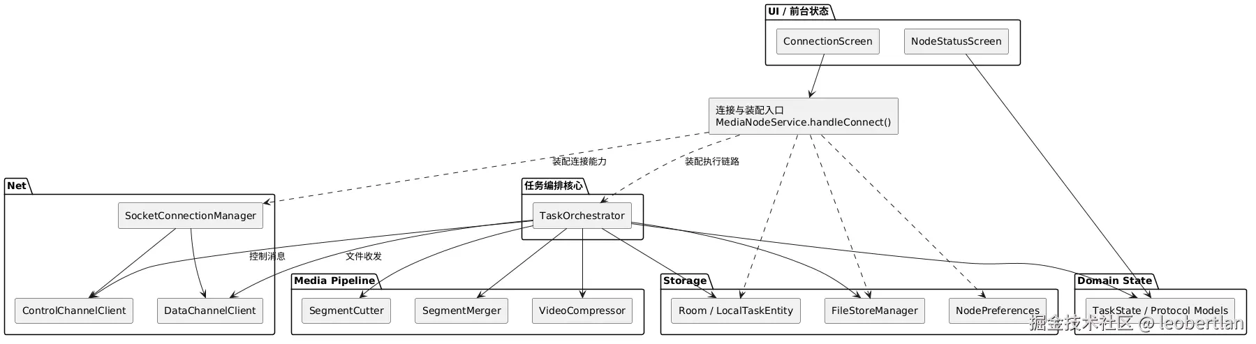 participant "Android 节点控制\nMediaNodeService / TaskOrchestrator" as NODE_CTRL