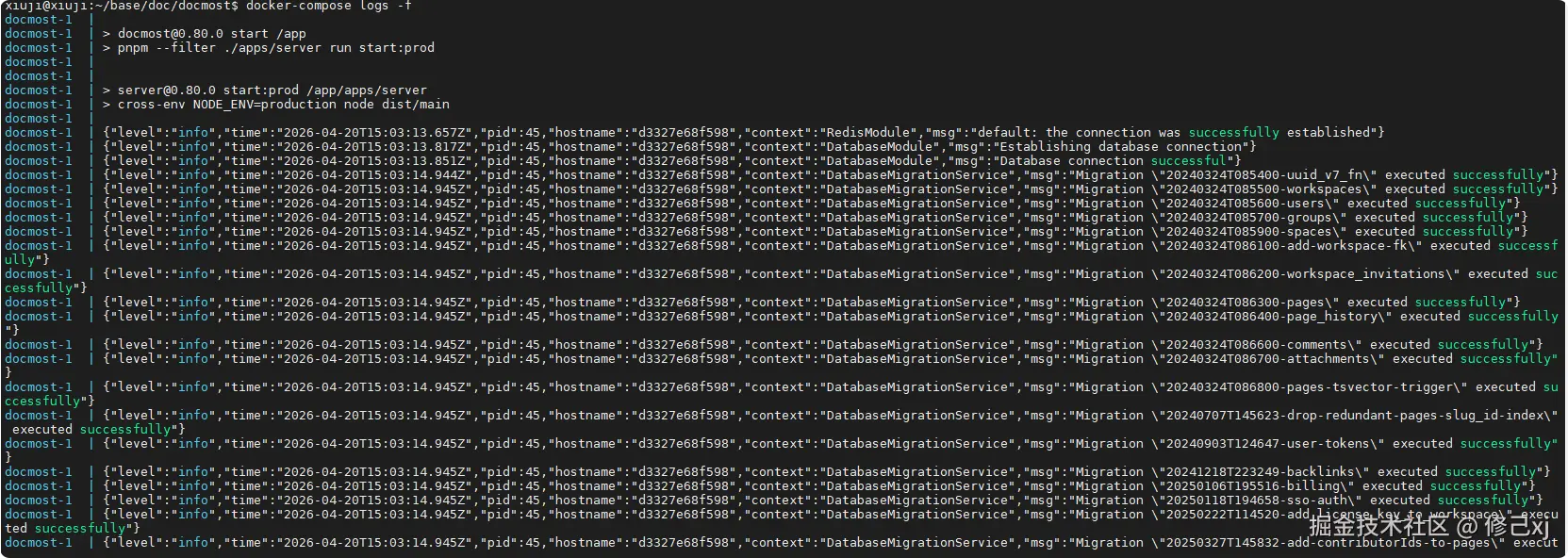 使用以下命令查看启动日志