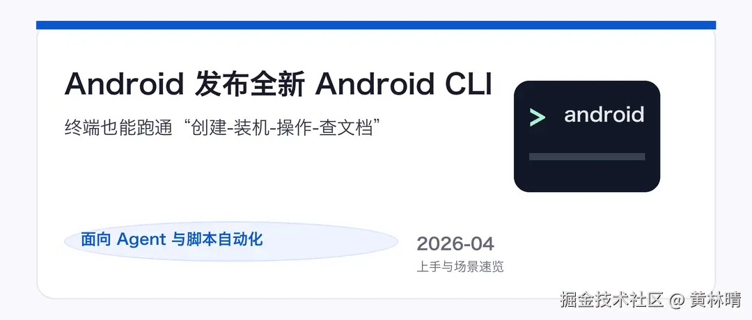 Android 团队刚发布了 Android CLI(预览版):你可以在终端里完成 Android 开发的关键闭环。