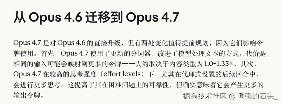 Anthropic这次换了一个新的tokenizer(分词器)。新的tokenizer号称"改进了文本处理效率",但副作用是------同样的文字,会被切成更多的token,大约是原来的1.0到1.35倍。定价没变(输入 <math xmlns="http://www.w3.org/1998/Math/MathML"> 5 / 百万 t o k e n ,输出 5/百万token,输出 </math>5/百万token,输出25/百万token),但你的账单会涨。